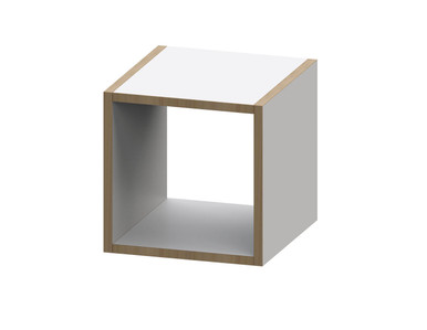 Double corpus, open, made of coated derived timber product, white or black, with edges in wooden decor: Chalet Oak