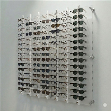 Our Locking DW Wall Mount Acrylic Panels with lockable metal rods offer a high-capacity solution for the display of eyewear frames, providing optimum value, security, and convenience to your store. These panels are precision laser cut and have polished edges, topped with premium European-made lock rods for maximum security. In Clear, Frosted White, Polar White (¼\\\" thickness), or durable Glass-look finish (3/8\\'' thickness), they come in sizes to hold 60 to 105 frames.