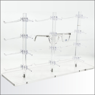 The 3X4 has three rods in the acrylic base - each rod comes with 4 Flat tray clips for a total of 12 frames per display. The Flat clips allow you to show your frames in an open or closed position.